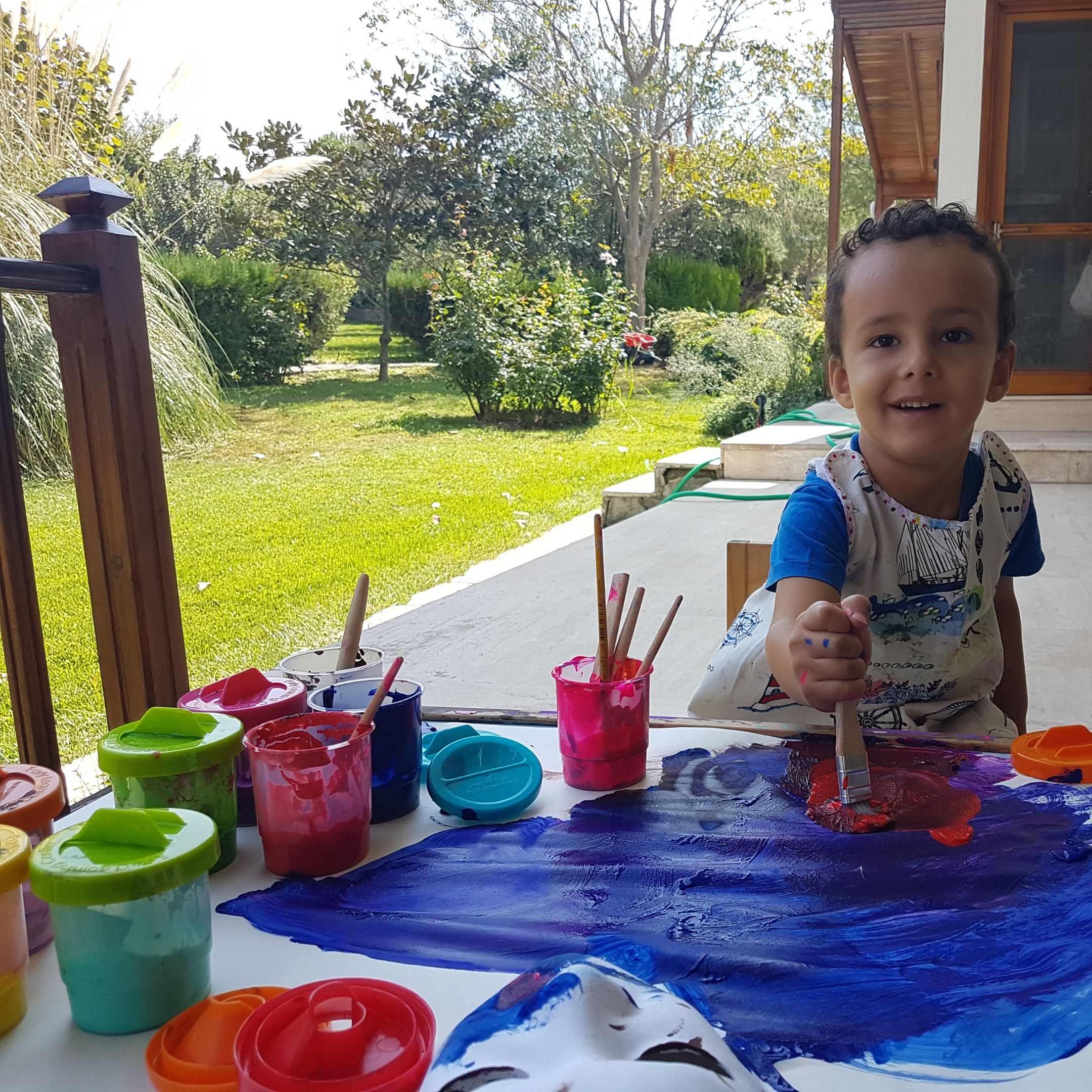 When my first kid, Ender began to play with the paintings, I bought some nice paintings with different styles: crayons, watercolor, finger paint, markers, chalks, and colored pencils.