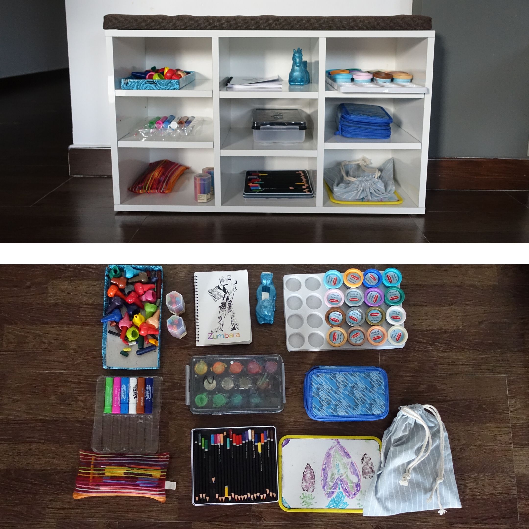 Finally now as I have both of them quite grown, almost 4 and 6, we have all the items in our art corner visible which is continuously inviting us to create when we are inspired.